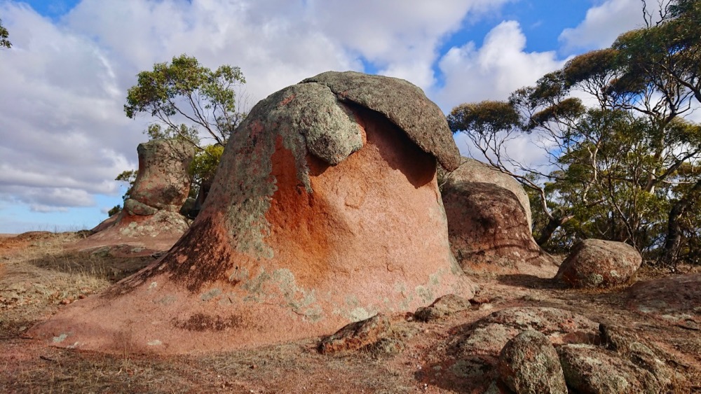 the haystacks are more granite rocks covered in red lichen. these are scientifically called ‘inselbergs’ which in some heathen lingo means something like stranded rocks.
