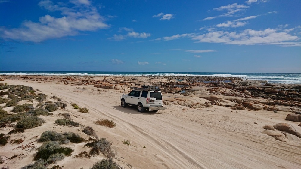 we had a quick look at smooth pool around kilometer 25 before passing yanerbie beach (a handful of amazingly big houses in the middle of nowhere) and the white sand dunes there at kilometer 30 before passing sceale bay, heading towards point labatt, 66 km into our quick afternoon lap.