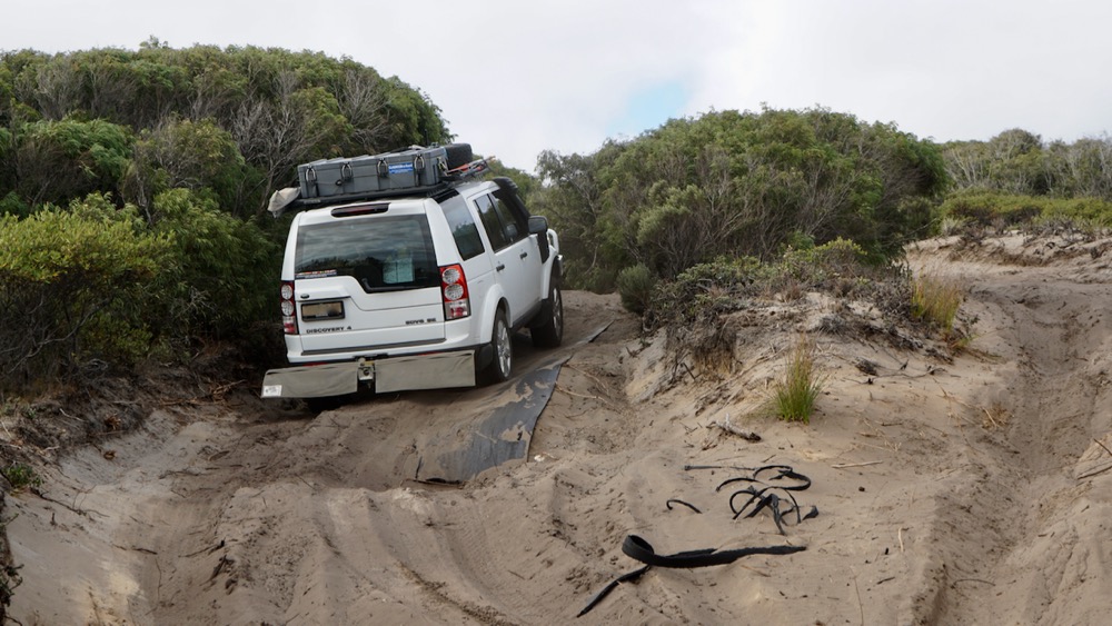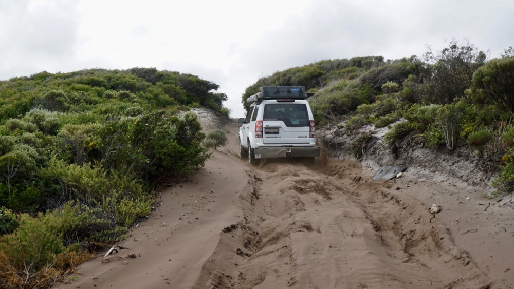 so far i’ve been really reluctant to take the disco onto deep sand tracks. the car is pretty heavy to begin with but to make it a greater challenge the land rover engineers fitted the discovery 4 with huge brakes (great) which means only 19″ (and bigger) wheels will fit over them. instead of the balloon type tyres so many off-road vehicles run disco drivers have skinny ones.
