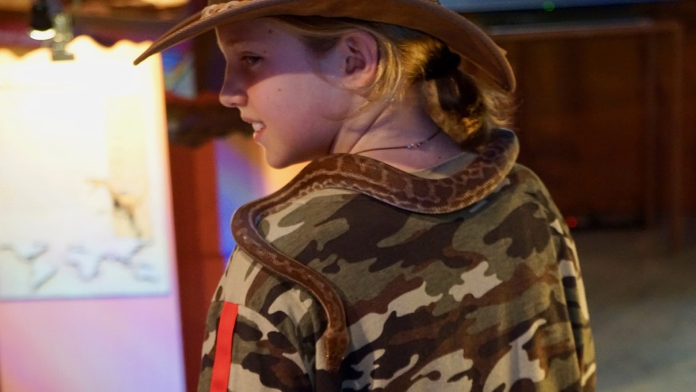 the little stimson’s python clearly feels right at home on all the camo gear.
