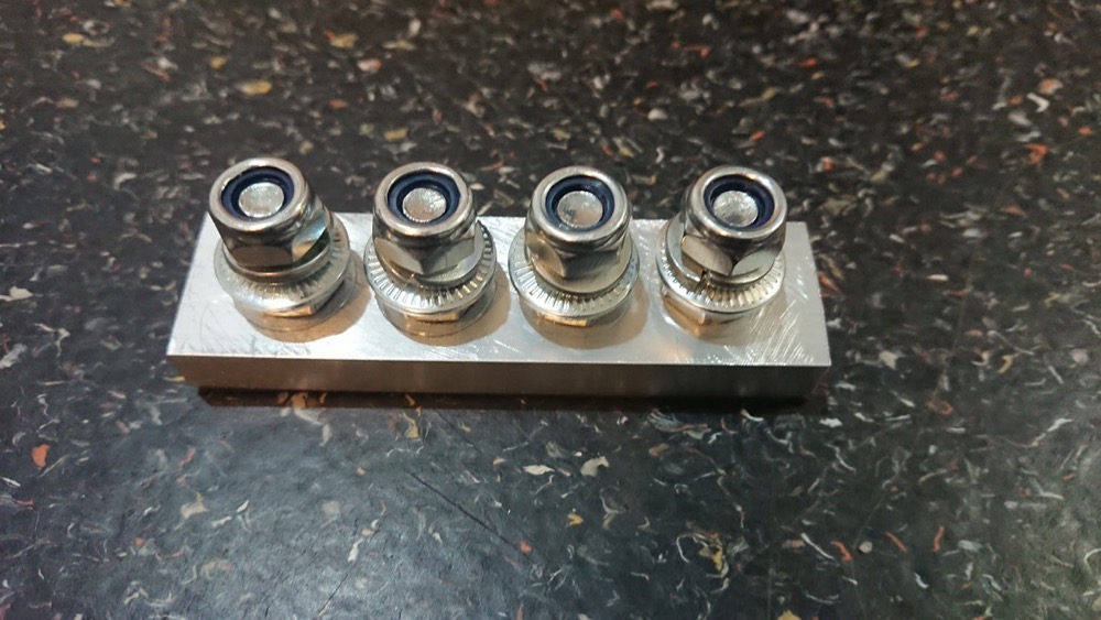 on the continuous improvement front i could not find a suitable busbar (a clever term for a piece of metal that connects a number of cables on a common point) so i made my own. i think it looks rather good.