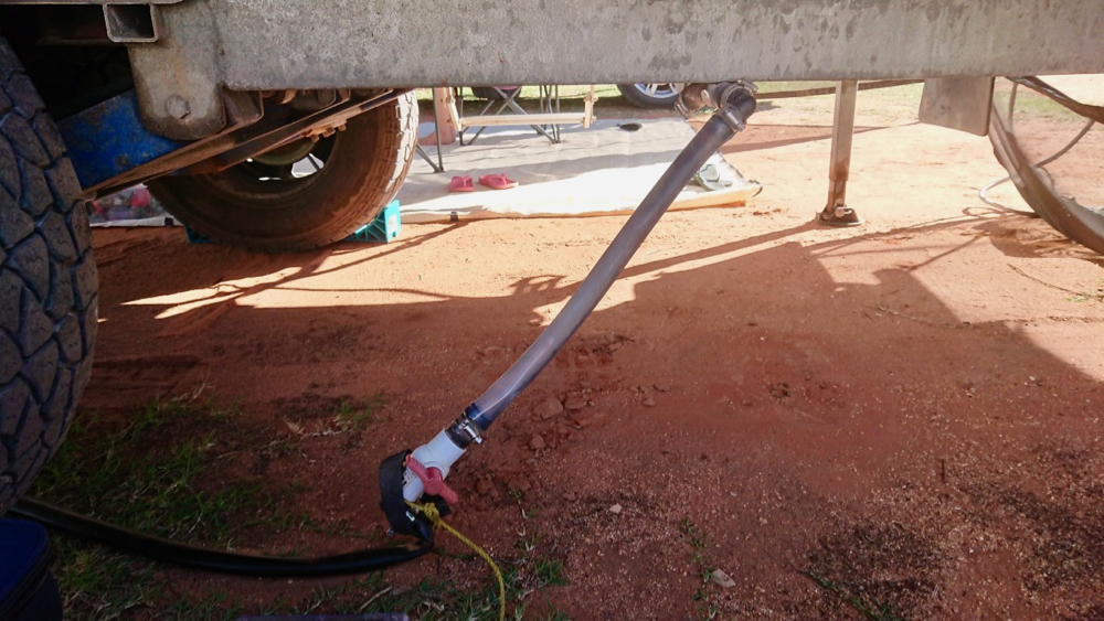 i also replaced this rather unsightly and long grey water outlet with a nicer one that tucks in so much better.