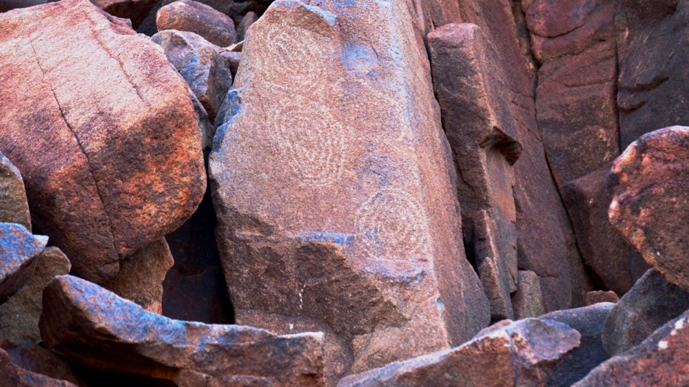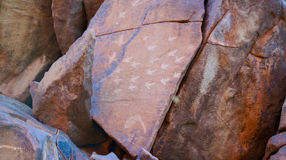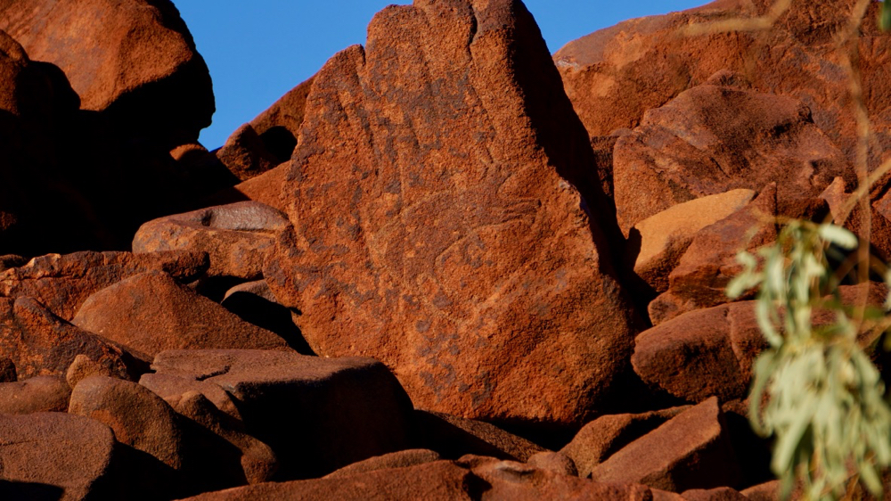 ancient aborigines clearly had other ideas: they saw opportunity, a massive drawing board. the rocks are plastered with petroglyphs.