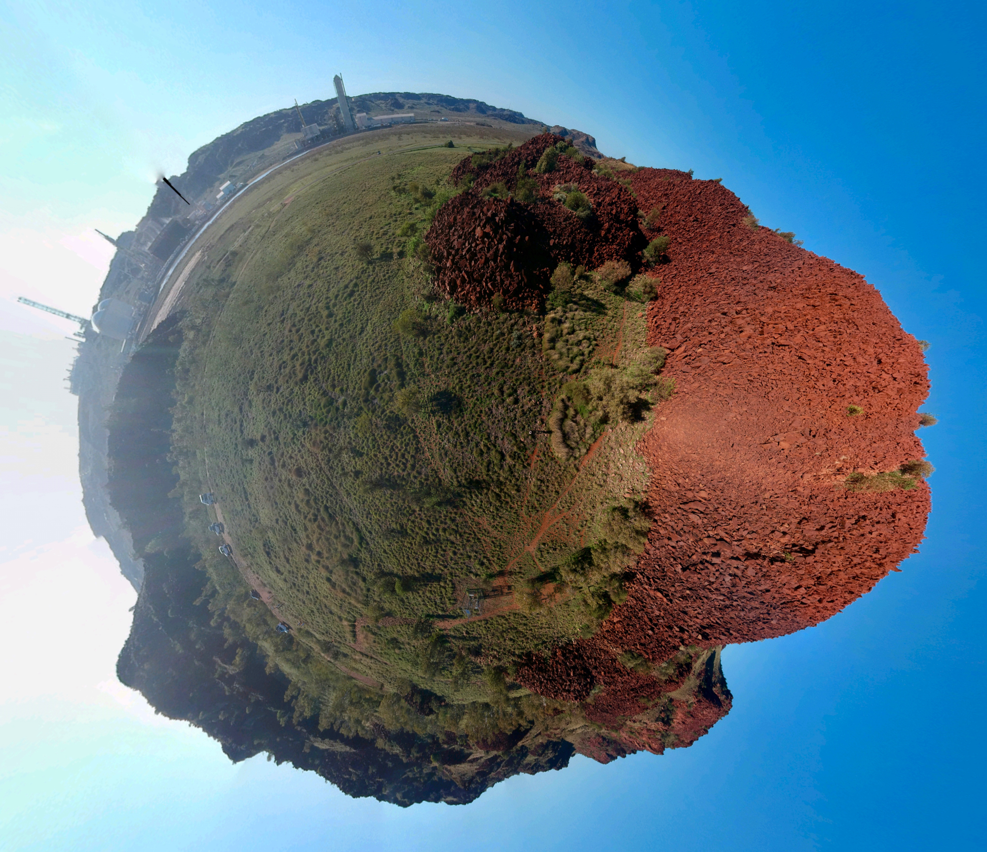 this tiny planet sums it up: the hills of red rocks with art among the oldest on the planet on one side, a gas plant on the other.