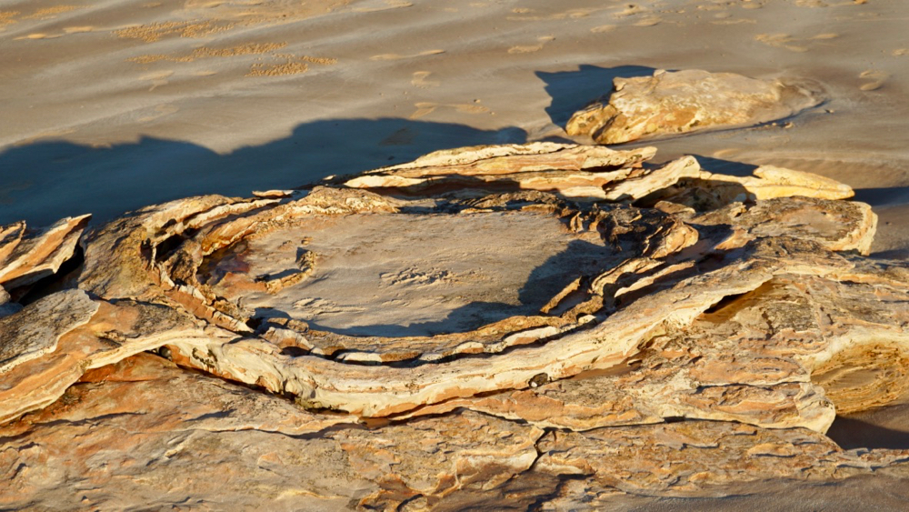 the entire coast from broome to the north is covered in these footprints which were left by several different types of dinosaurs. only a few of them are generally visible, many are covered by the ocean and are only visible at low tide – unless they are covered by sand.