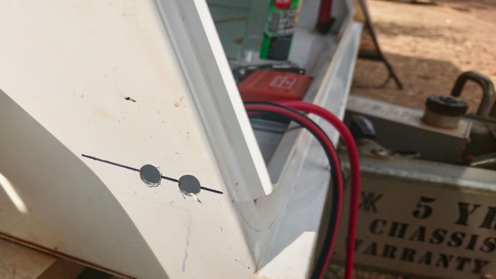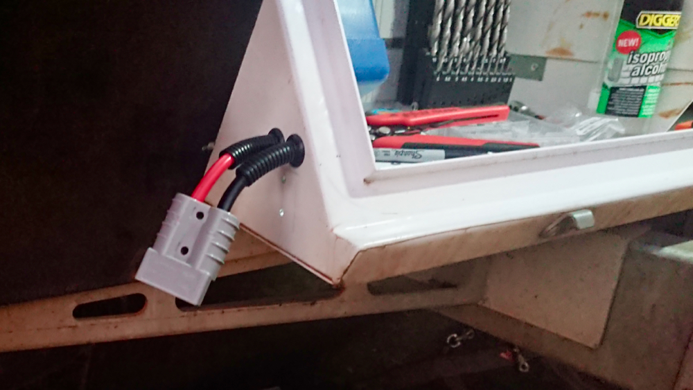 we recently added a 200w blanket to our inventory, so now we don’t need to switch any more. that offered another opportunity to improve our setup: these solar blankets generally come with fairly cheap (and not too sophisticated) solar controllers. these controllers are also located on the wrong side of a five meter lead. the dc-dc charger we use to connect to the van to the car also includes a maximum power point tracking (mppt) solar controller. therefore all i needed was another anderson plug close to the controller, which meant drilling through the multibox.