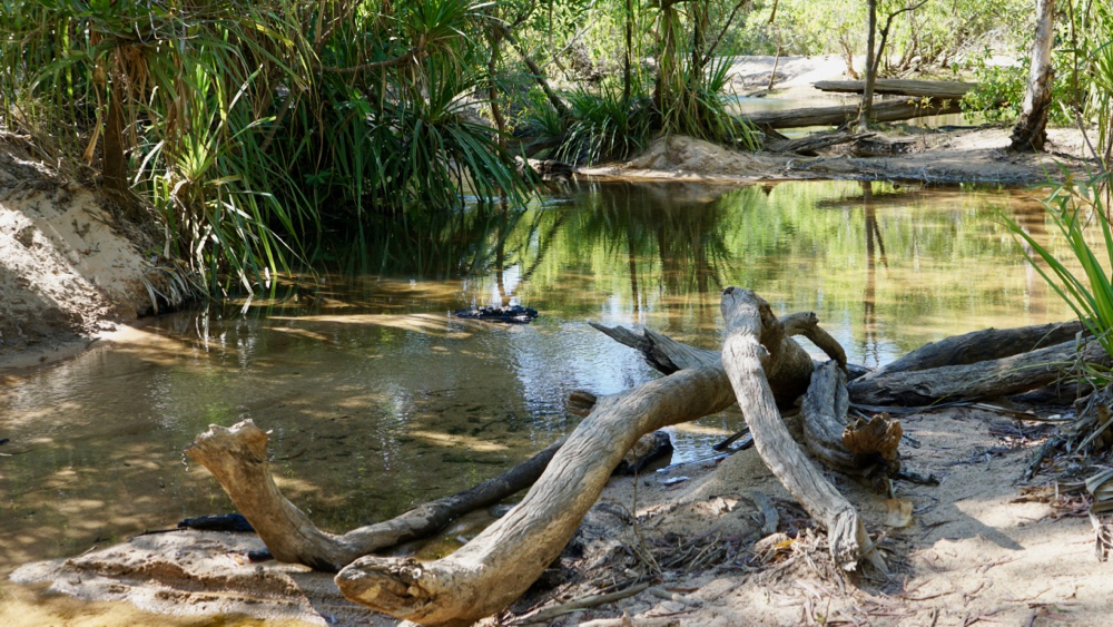 next to the camp runs a stream and the water in the stream is … warm. like a bath tub. all along the creek are areas where warm water bubbles up through the sand. some side arms are cold while others are too hot to step into the water.