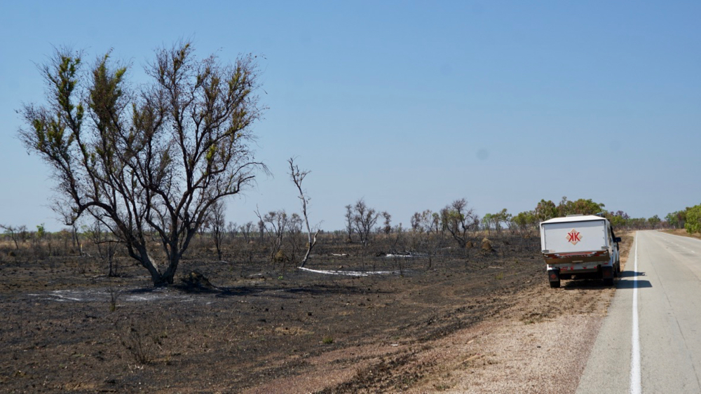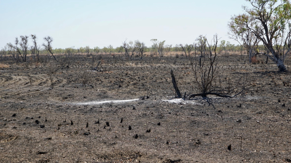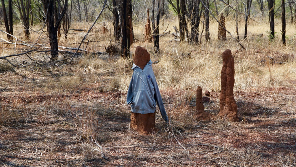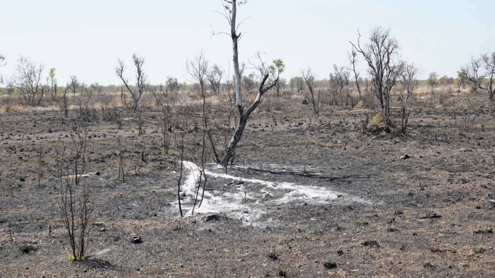 sections of the bush on the side of the road had been burnt off and we found a few of these white figures on the black earth; we called them ghost trees. i think that hit the mark in more than one way.
