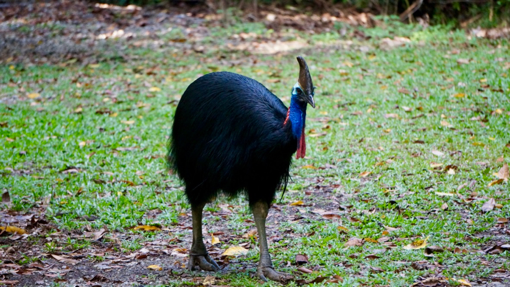 cassowaries grow get up to two meters tall and can be aggressive, which possibly excludes them from the top ten animal selfie list. i believe there is actually one confirmed fatality of a cassowary attack but for some reason the brochures don’t mention that.