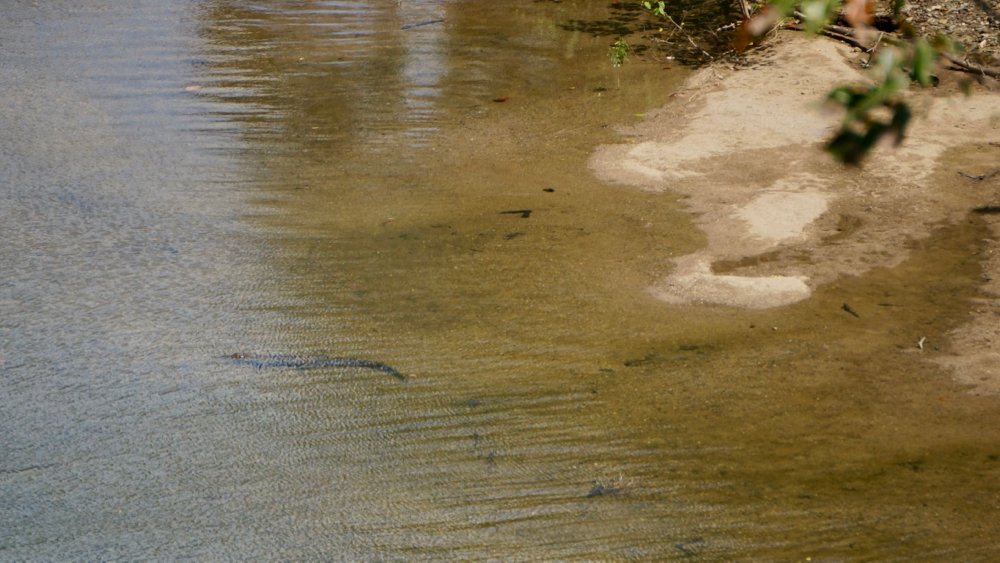 … we saw this guy warming himself in the shallow water, seen from the same vantage point. so no swimming in the bloomfield river either. unless you would like to test the theory that when a croc grabs you there may be a chance to escape by reaching into its mouth and trigger a gag reflex. you don’t like the idea? well if a croc grabs you this is the only chance you have … we are the first to admit that at that point the odds might be heavily stacked against you.