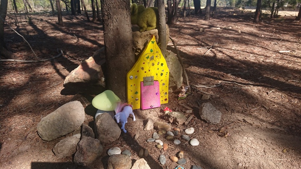 initially nat was not too keen but once she got started she actually did really well and rode up and down without complaining. i think she herself was surprised how well she did plus she loved the little fairy doors which are strategically placed around the trails. that must be where the trail fairies live – cute.