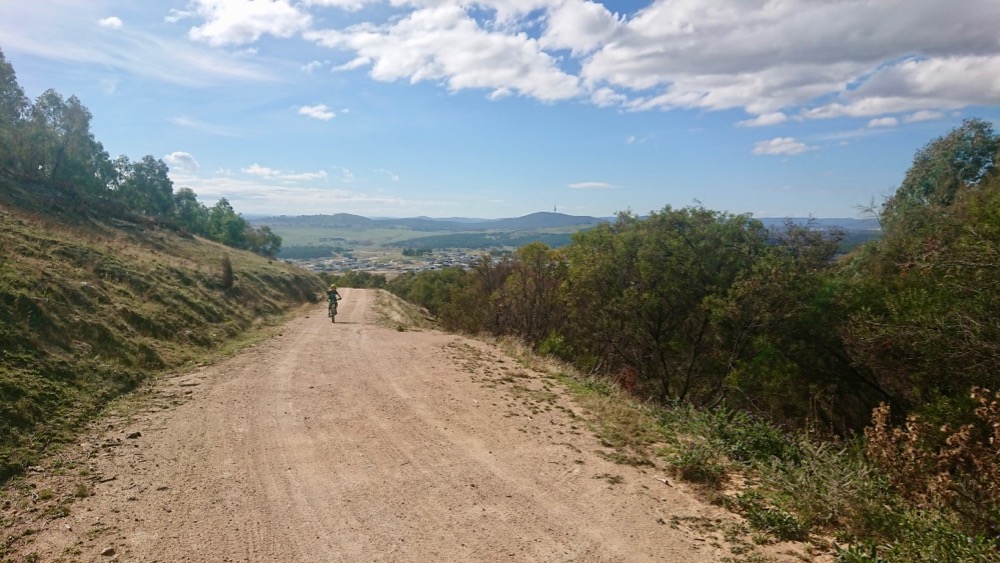 we do know mount stromlo pretty well and nat played guide for the older girls. she did a great job, too, and kept the girls on their toes, allowing brigitte to focus on riding with her youngest.