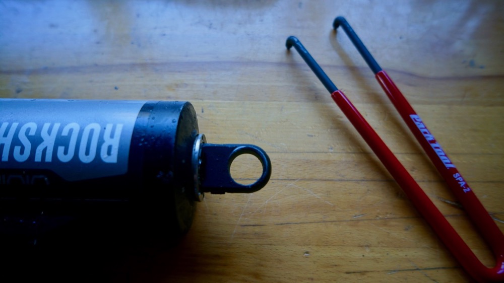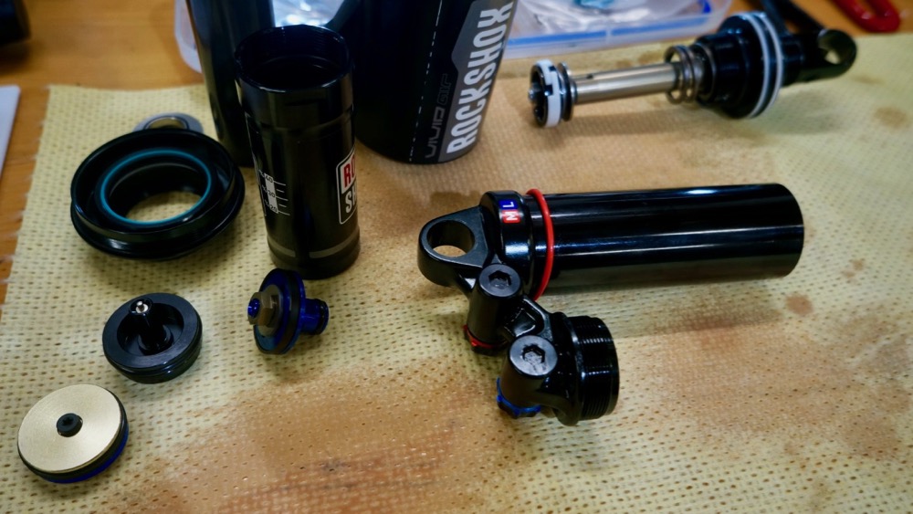 well for starters the very first lock ring did not want to open – at all. seriously. rock shox specifies that this ring should be secured with permanent threadlock, which likely caused this issue. luckily after i stuck the shock in the freezer for a while i finally managed to turn the ring.