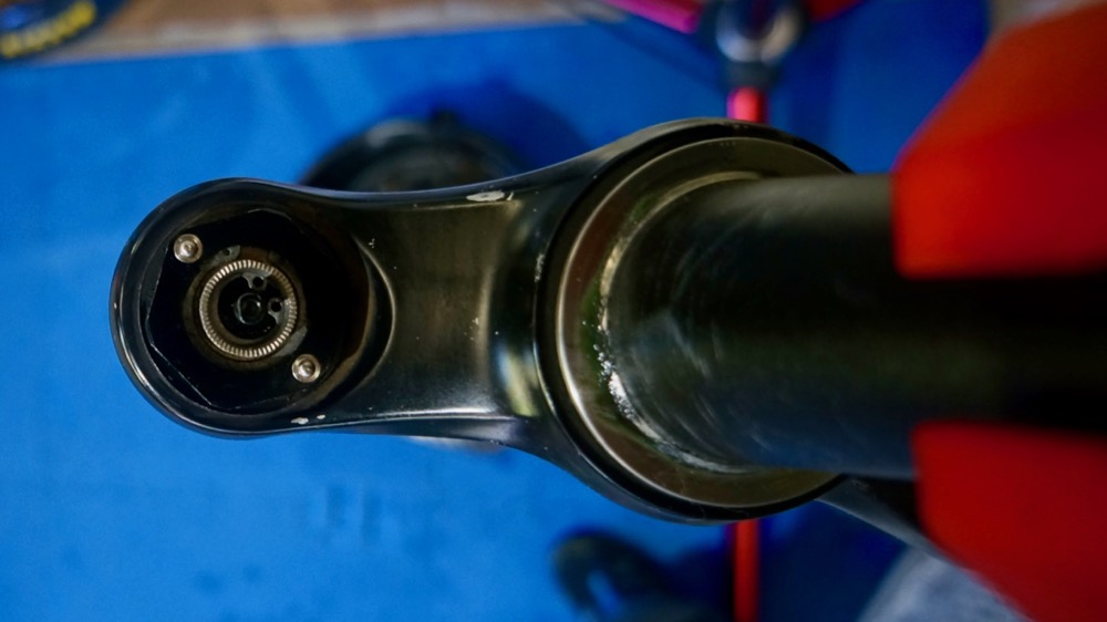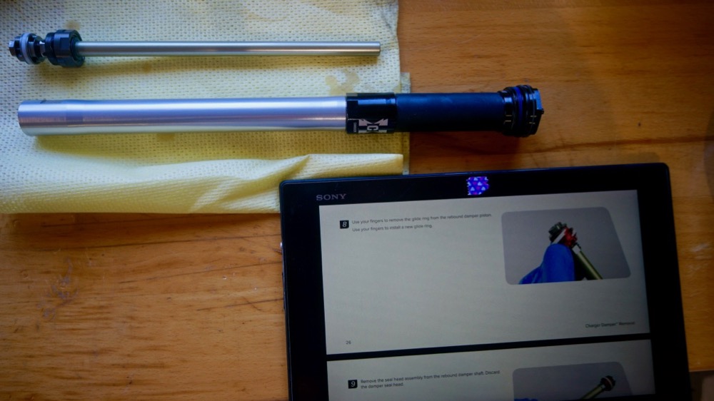 with that little addition to my endlessly growing set of suspension service tools it was logical to remove both sides of the fork, the air spring (left side) and the damper (right leg), so that includes all the seal and o-rings of course.