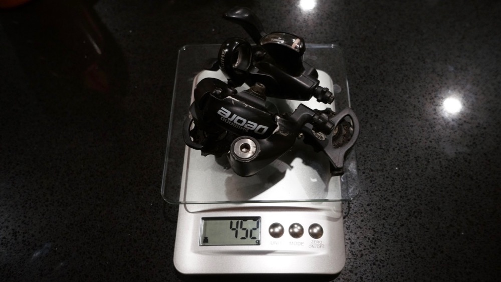 it’s a quick and simple procedure, just some basic nip & tuck, but the results are spectacular: 515 grams (actually a bit more for the cable & housing) have again been removed from the bike. that’s half a kilo! amazing how heavy those old shimano parts are.