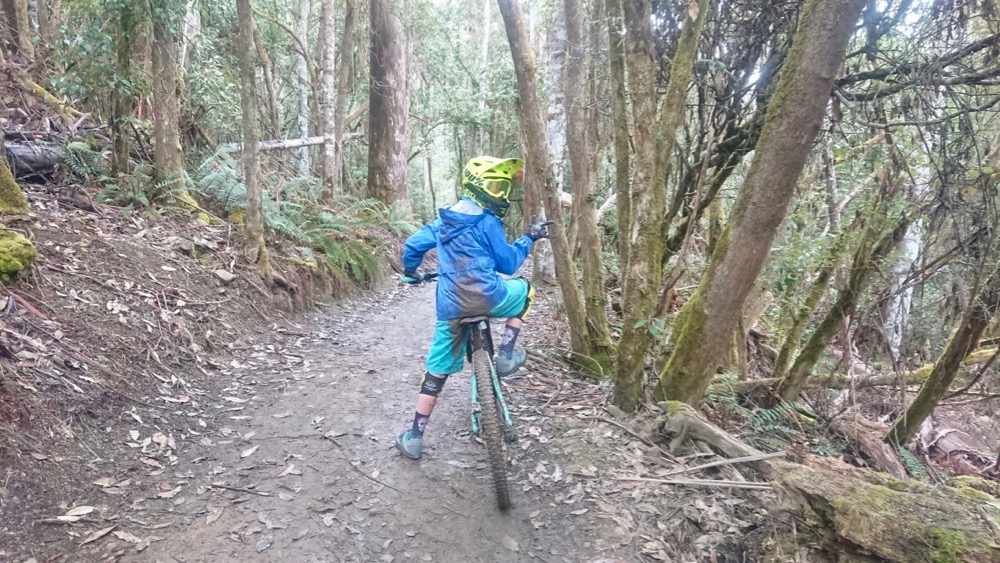 nat and i still enjoyed the ride. maydena is steeper, not necessarily in the scary ‘oh my god my front wheel just disappeared’ way, more as in a relentless downwards trajectory without too many parts where one can rest a bit. the corners require a slightly different technique and there are fun parts with amazing flow.