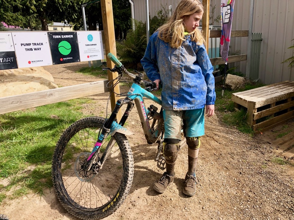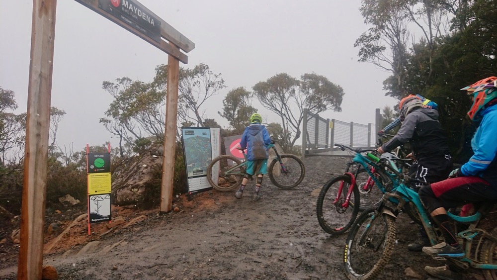 well they didn’t but it wasn’t exactly pouring either. more the sort of unfriendly drizzle (mixed in with snow at the top) that’s not a good enough excuse to stay indoors but just bad enough to really spoil the ride. i usually feel that i can cope with moisture from below but really don’t like the kind that falls on my head. maydena made me change my views: the moisture from below can be quite as bad, especially when mixed with the maydena clay that sticks to the outside like … clay.