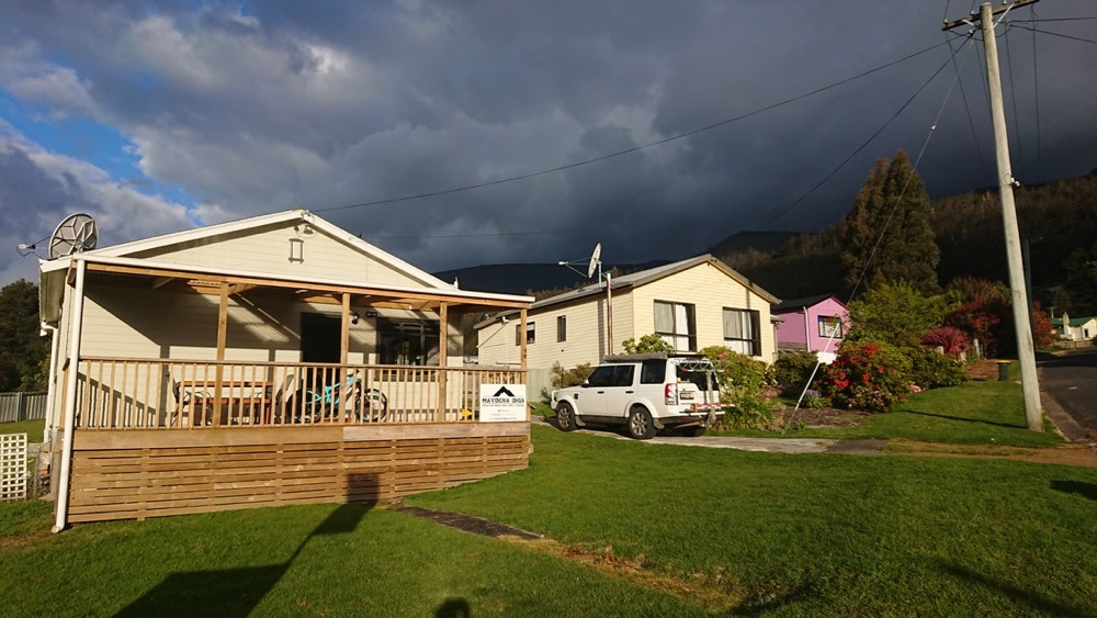 when you start wondering if anyone actually lives there at all (what a strange place to build a road) continue until you get the distinct feeling that probably not even tassie devils and wombats inhabit the place. from there it’s just a bit further and then suddenly around a bend and over a hill maydena comes into view.