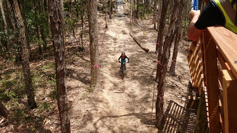they must come to an end: like this year’s racing season. today nat participated in the last club race fo the season, the fifth downhill race. paul, the trail builder, had come up with another surprise: he connected the downhill track to the bottom part of the enduro trail via a little drop across a berm.