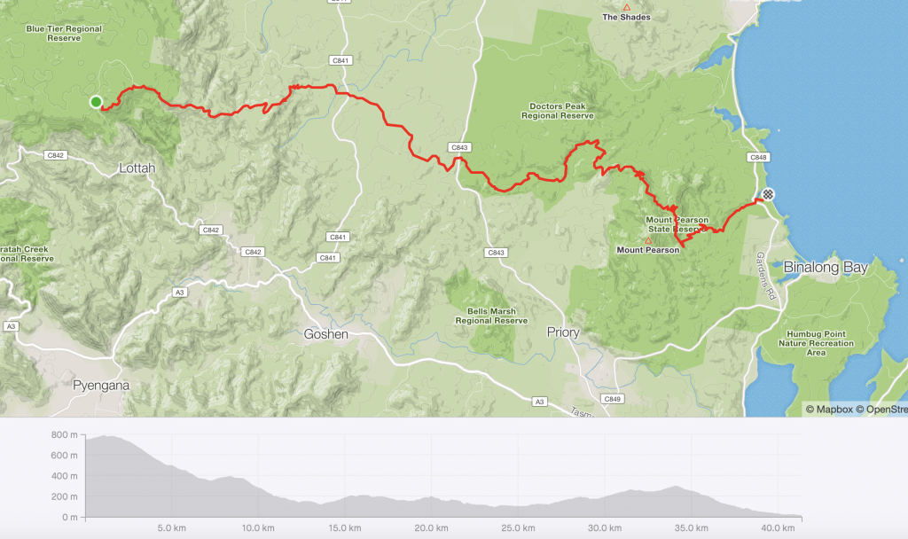 there are a few places where one can bike from a mountain top down to the beach; st helens in now one of these places. the new trail goes down from blue tier (where the trail down to weldborough starts as well) and runs all the way to swim cart beach.