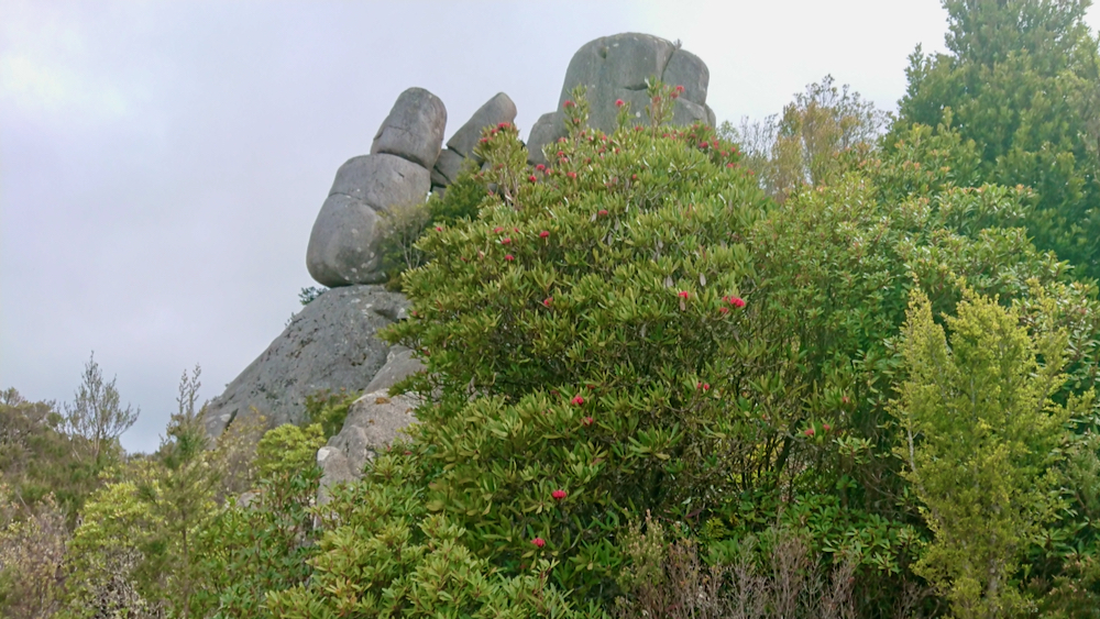 a waratah tree! back home they are a single flower on a long set, here in tassie it’s a massive bush. and apparently it’s possible to make juice out of them. we’ll have to try. this is just a few minutes from the trail head and where the fun starts.