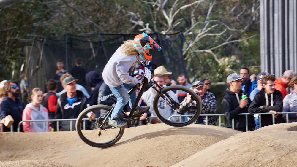 after a little boost from the start ramp it’s all down to the arms and legs, hence the name ‘pump track’. nat qualified third but did not have any time to celebrate her success – it was a change of clothes and bike and then off to the flow race which started at 1130.