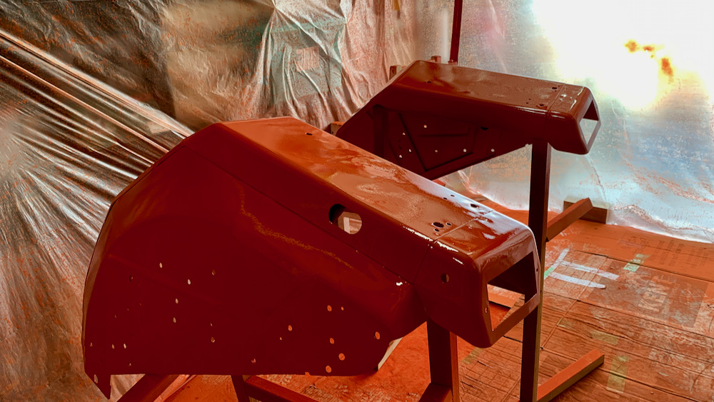 finally there were a few welding jobs to re-attach tabs that had been ripped off. i had to fix quite a bit of rust damage on the fenders (which i ended up getting media blasted as well) which really challenged my mediocre welding skills and in the end i had to learn how to spray paint – an ugly job.