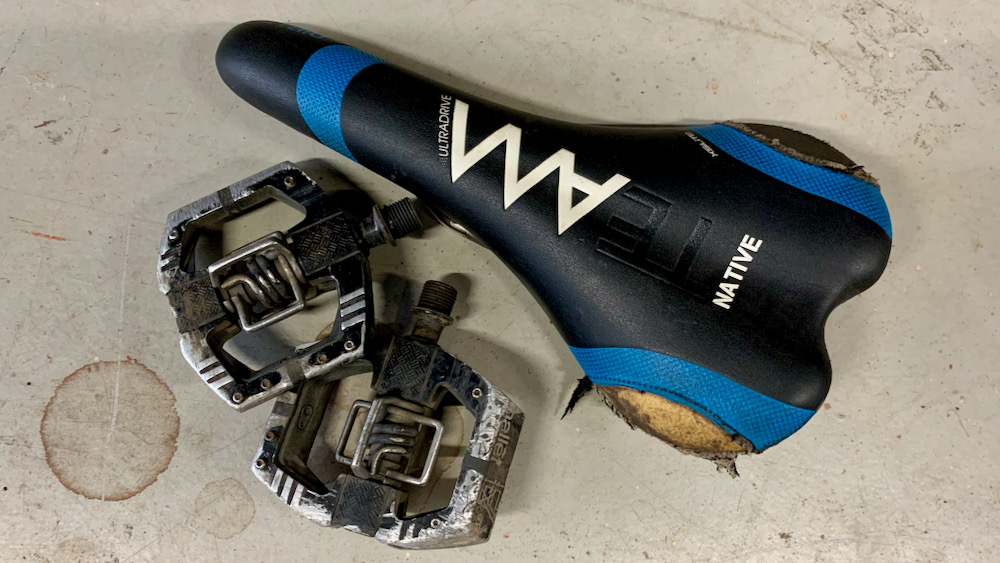 time for new parts: i needed a new saddle and a new set of pedals. pedals were an easy choice, i just replaced one set of mallet e with exactly the same type.