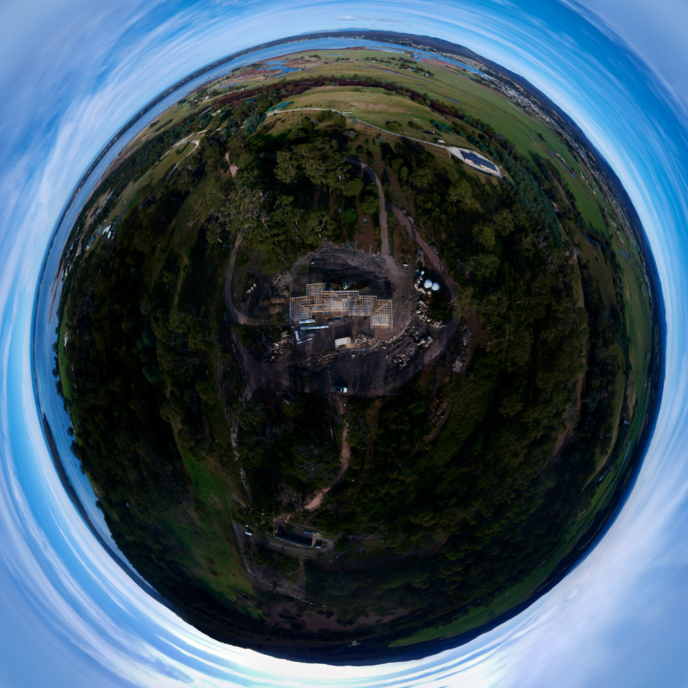 and here is a nice ‘little planet’ from a slightly higher vantage point as usual. it shows not only the house, but also the shed and our ‘kunzea plantation’ to the north (at the lower end of the planet). it has been a lot of work to get to this point, and we’re only just getting an idea of what it will take to finish our job. it’s given us a completely new perspective on what is means to own a bush property – but we love it!