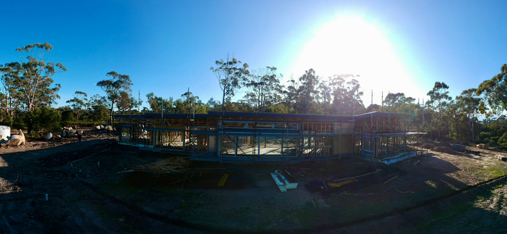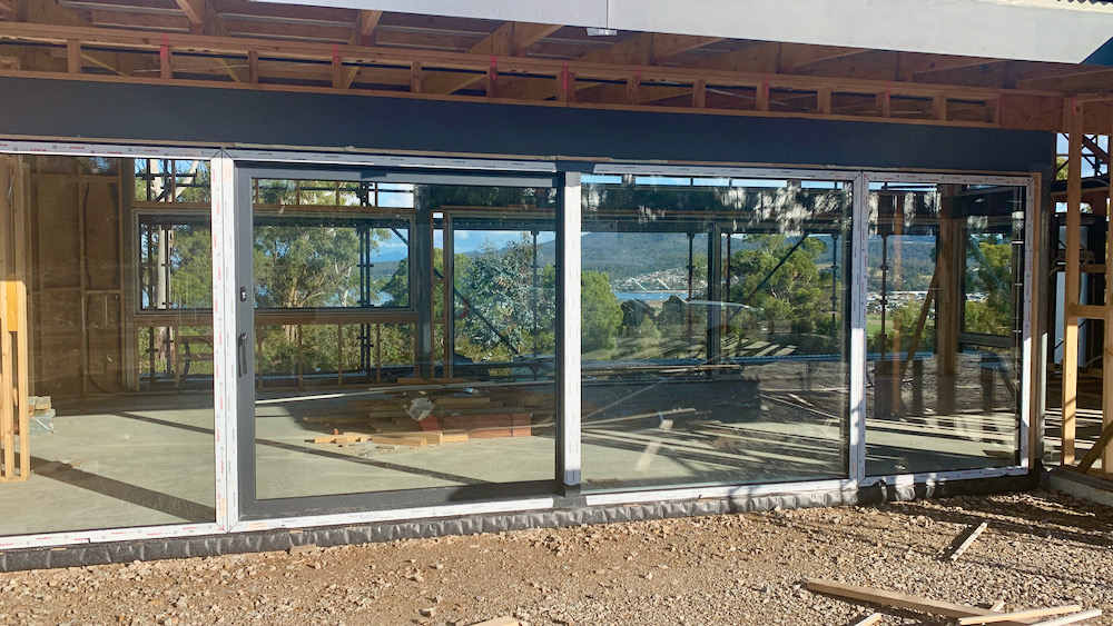 the window installers were next. of course all windows are double glazed (evacuated & argon filled), with a 5 or 6 mm toughened glass sheet on the outside so the windows can withstand fire; this is part of the requirement to make the house bushfire resistant. the frames are thermally broken and made of … plastic.