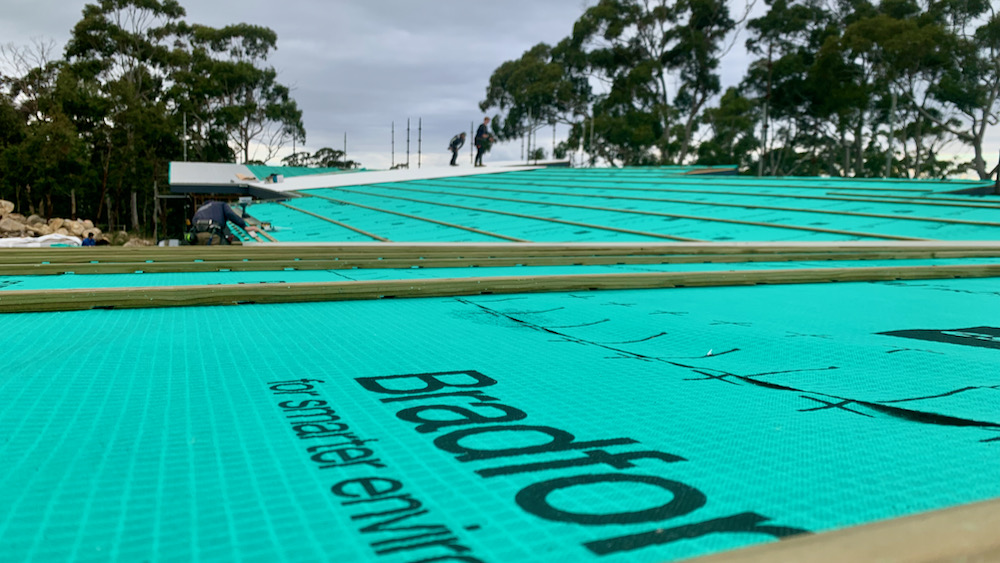 … don’t bother showing up trying to help build our house. we’re all about the right tool for the right job. in case you wonder what the green sheet is: it is a membrane that allows water vapour to pass through from below, but doesn’t allow water to make its way back inside. it mostly works, there is only one spot that requires a bit of remediation, but the key point is that by allowing moisture to pass through we will hopefully not have mould issues, which plague so many australian houses.