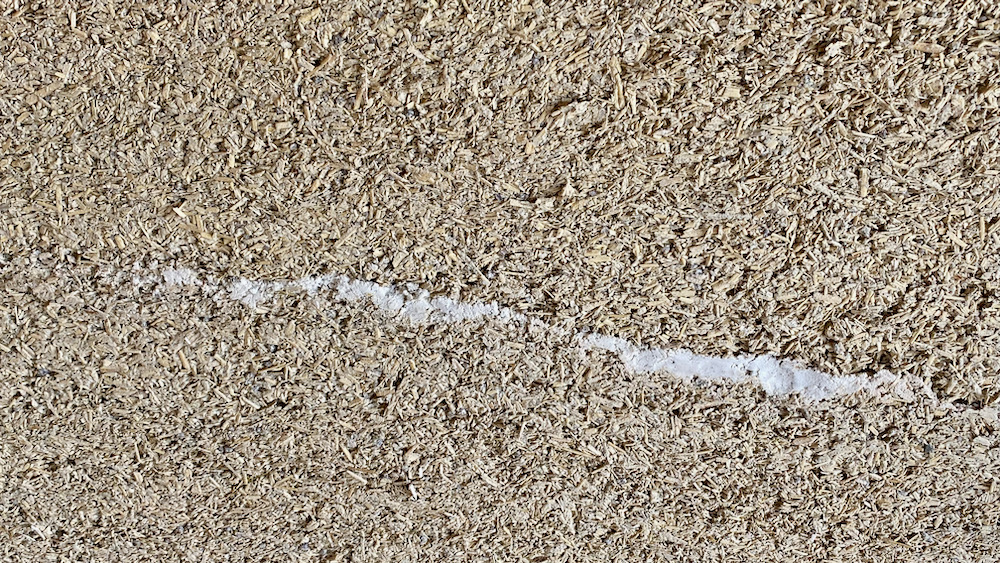 and just to be clear: this isn’t a matter of using one recipe over and over again. warmer weather may require more water to achieve the same consistency, while mixing on or after a rainy day will need an adjustment for the excess moisture in the hemp and the sand. that is assuming the mix is done correctly to begin with: we’re not sure what happened on the wall above, but the darker layer is missing a fair bit of lime while the layer above it contains significantly more moisture than it should.
