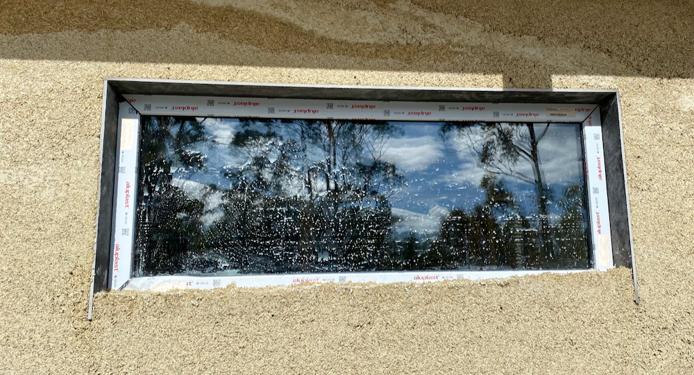 this ‘miss’ isn’t so much a hemp construction thing as a design issue. issue may be the wrong word, it is more a choice we would not repeat if we had our time again. the hemp walls under and between the windows would probably work better if there was more of it. sure, that would mean smaller windows, and the view is definitely spectacular. but next time we would raise the window sill to, say, 400 mm, and make the column between the windows larger so the hemp is actually visible and not squeezed in between two cement sheets.
