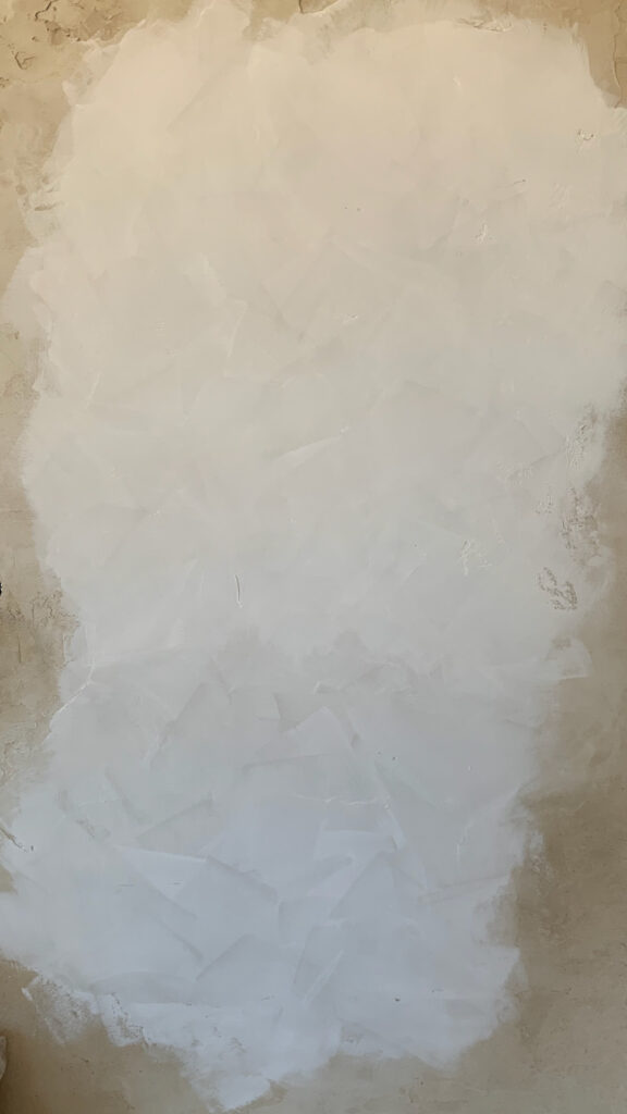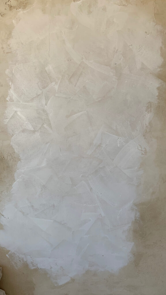 but first we had to try how well the lime wash would cover the grey-brownish sand & lime render, given the recommendation is to apply two coats of lime wash on top of a base. and since the experts could not help us figure out whether the base coat was actually breathable (we suspect it isn’t, the safety sheets sounds a bit too chemical), we tried painting directly onto the render. the photos above show the first coat (left), and then then second (top two thirds on the right). we think it will work, and we actually like how the paint isn’t completely even (that’s a feature of lime wash), we think it brings the walls to life and is very much in character with what we want our home to be.