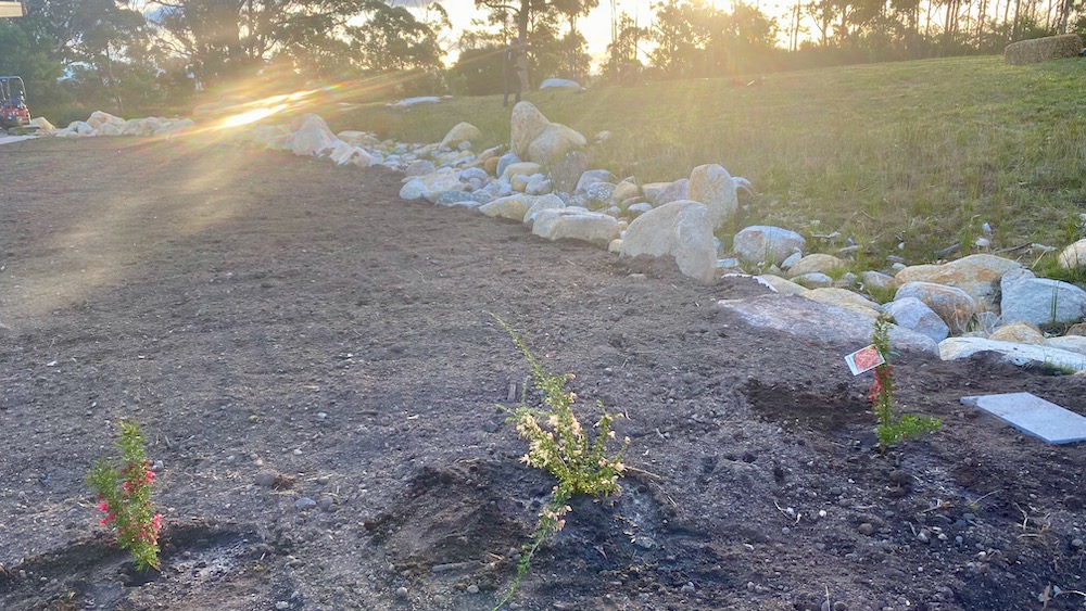 kris & nat went to visit the local plant nursery to pick out a few shrubs. they returned with a selection of waratahs and proteas in a range of different colours. proteas are not native to australia, but we got special approval from kris’ biologist friend & advisor because they do not spread and become a bio invader (unlike the the stupid deer that are roaming the neighbourhood). waratahs are native to tassie, but i believe the local ones need a lot more water than st helens typically gets, so the ones the girls got are hybrids.