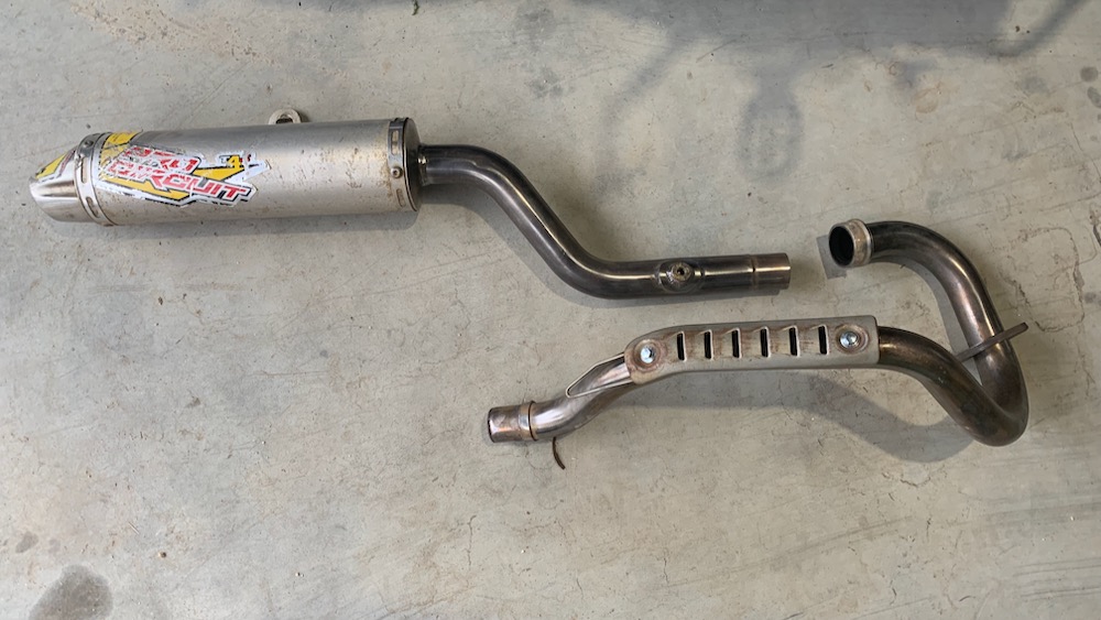 i wasn’t pursuing any such noble goals: all i wanted to do was free up the flow of gas through the tt-r’s tiny cylinder. as i removed the exhaust system to clean it a bit with a wire brush i found this strange little tube within the header. apparently regulators in some countries like to be a bit ‘restrictive’ – see what i did there?