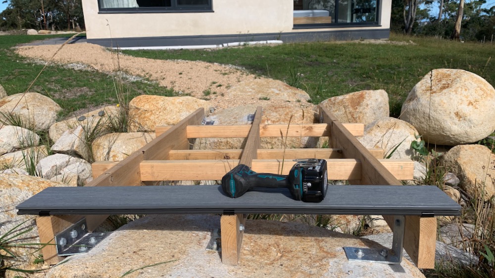 i admit the structure is probably not really bal 29 fire rated, but with a fire rated surface it should still be fairly safe. i am using composite decking, which in this case is actually fire rated, and with tiny 3mm gaps between the boards i suspect embers would find it hard to get to the timber. i hope this will not be tested any time soon – or better still: hopefully never!