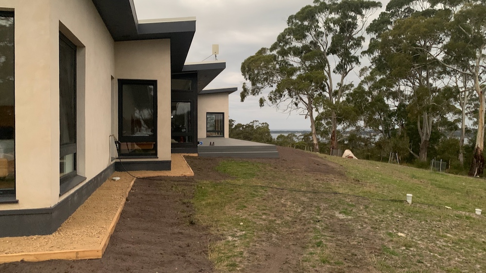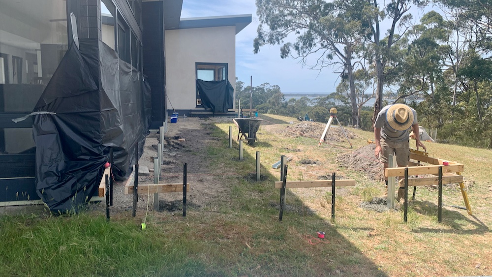 ps: we also finished off the edges of the slab with some fresh argonaut gravel and some prime dirt, to which we applied liberal amounts of grass seed and growth enhancers, aka cow shit.
