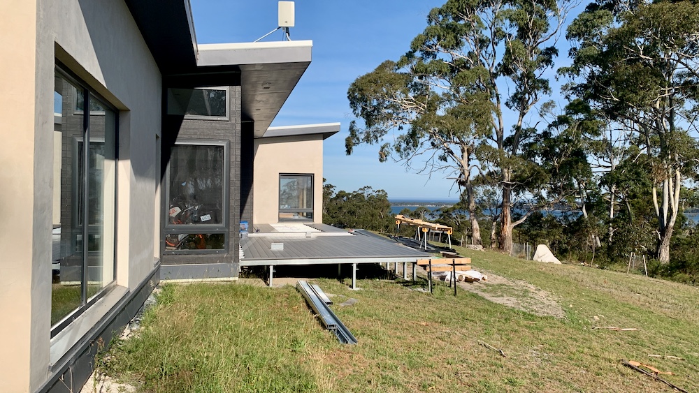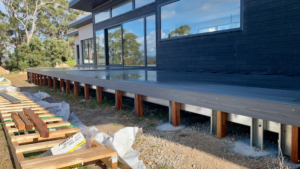 we still have a few odds and ends to tidy up around the house, and the deck was the biggest one of them. and since the house is located in a bal 29 fire hazard zone we needed to carefully select the materials; timber, which is mostly used for decks, was out of the question for that reason.