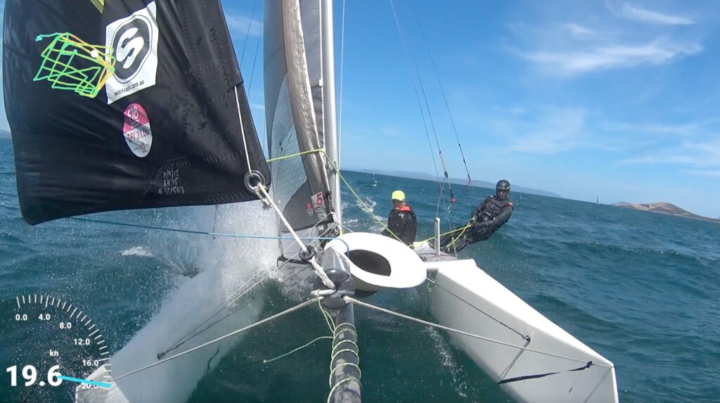 here is another little edit. 18 knots … things are hotting up. it is good to have the opportunity to start practising in increasingly strong breeze, yesterday it topped out over 15 knots. apparently in fremantle in summer it blows 20 knots plus, and i am definitely not ready to handle that. oh well, we still have a year, assuming we train through winter. brrr.