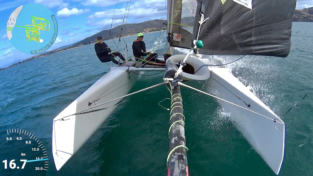 on the first day the wind was considerably stronger than we expected and we probably wouldn’t have thought we could manage purely based on the numbers – turns out we could. we then also set the rig pretty tight on the second day based on the forecast but that was unnecessary; on the upside that gave us confidence to practice our manoeuvres and on the whole it worked well.