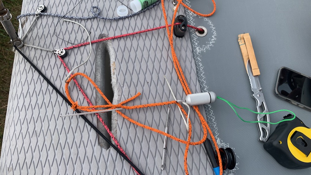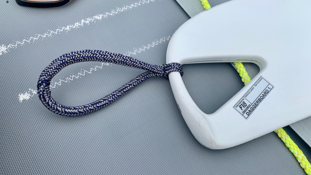 as always there were a few things to fix: the downhaul loop was too short (my mistake) and nat suggested we make loops to help pull up the centerboards. naturally did a great job with those. they look good and it’s almost impossible to grip the boards without them.