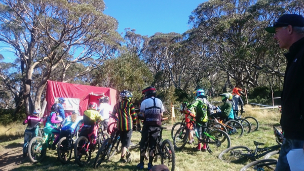 this may look boring but queueing is clearly part of racing. actually it’s nice, too. the atmosphere is really great, there are always people to talk to and unsurprisingly so many common topics come up. or as others may say, only one: bikes. anyway, suits me. i made some new friends up the mountain while the girls made friends down in the valley.