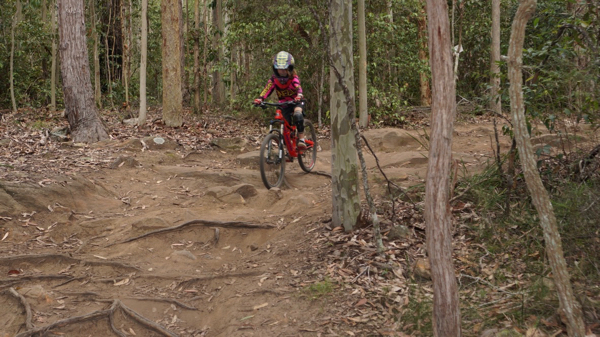 a very hard act to follow, too. she knows how to throw a bike down a dh track, even roots and rocks don’t deter her.