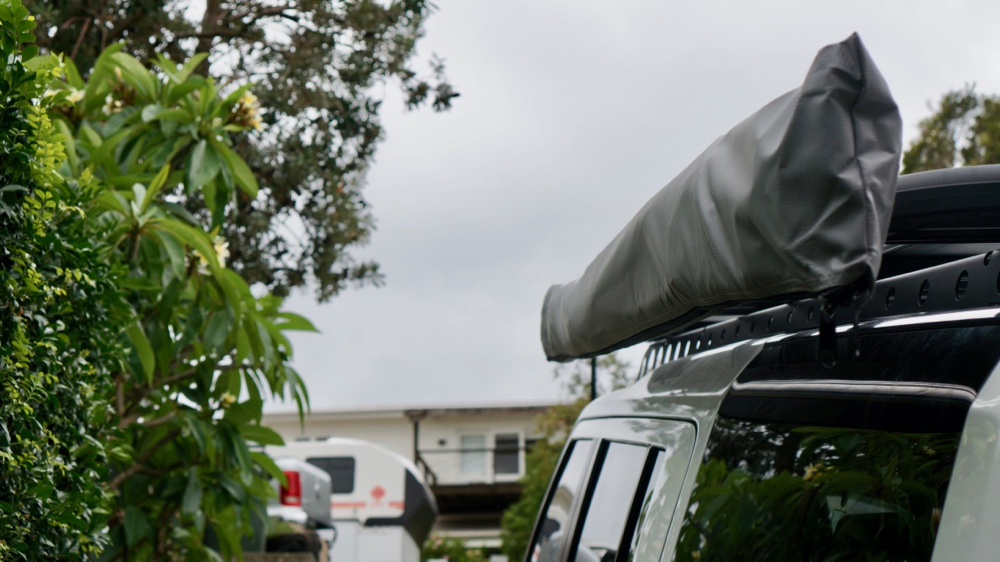 kris also got a shade sail (she gets all the cool stuff around here). that’s now mounted to the platform and can be pulled out in a few minutes. we can use it for quick stops or when we want to have a bigger shaded campsite.
