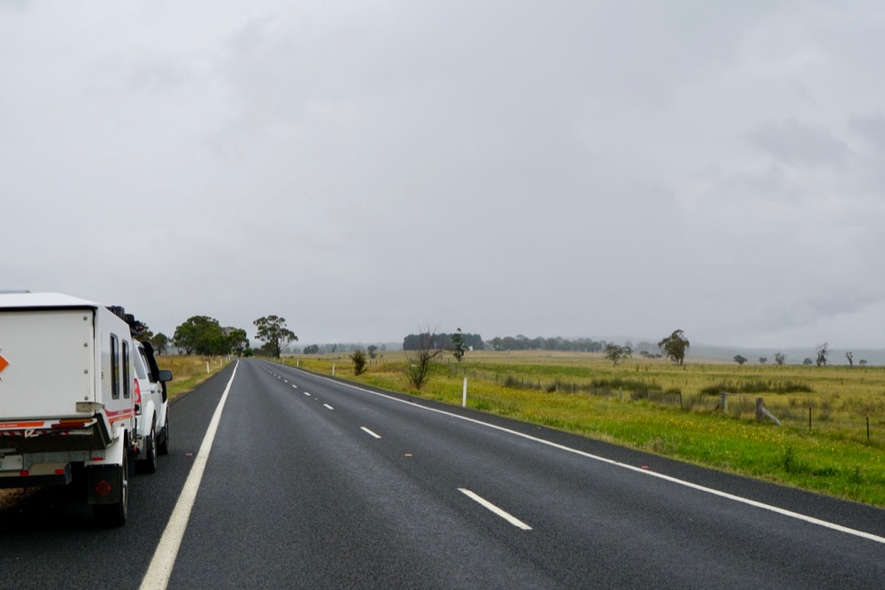 the typical gippsland vista. a bit like home, flat with the mountains in the back. only a little further to mebourne now.