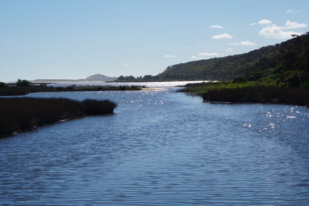 on the way there we took a little detour, a tourist drive off the princes highway. this is where the ‘legendary’ snowy river, coming from mt kosziozko, meets the sea, at marlo. who knew. the result looks more like a lake separated from the sea by a line of dunes but it was just pretty enough to warrant another change of schedule.