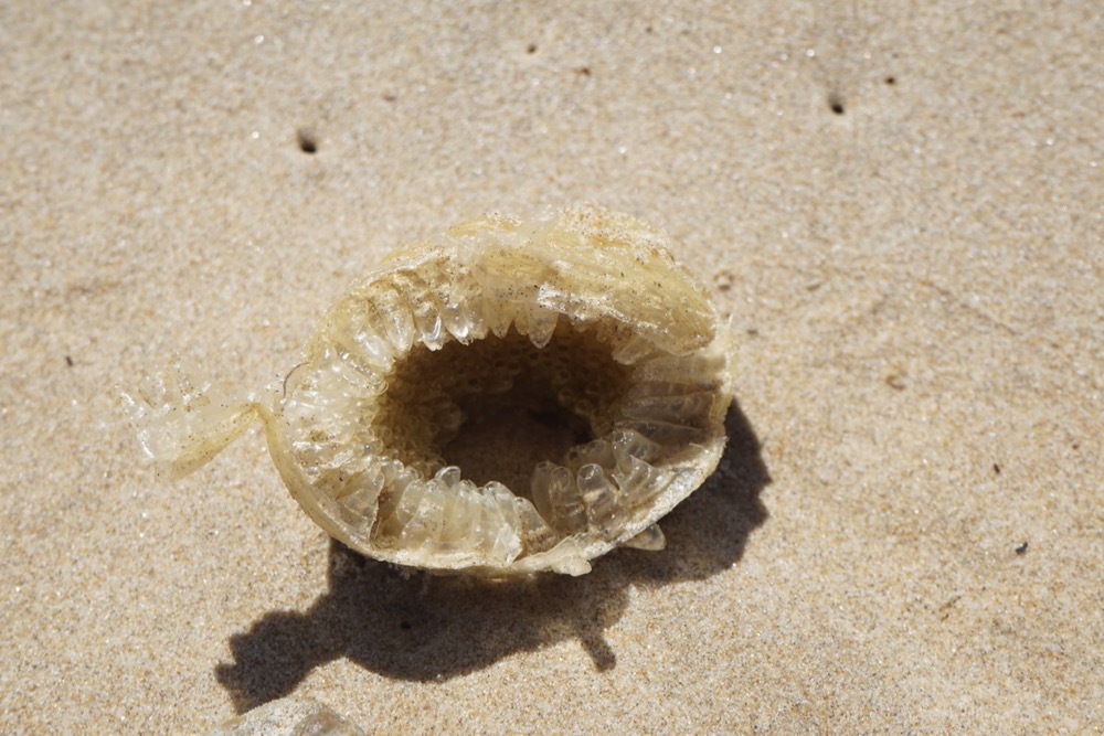 we have no idea what this is but there were many on the beach. treasure beach, see?