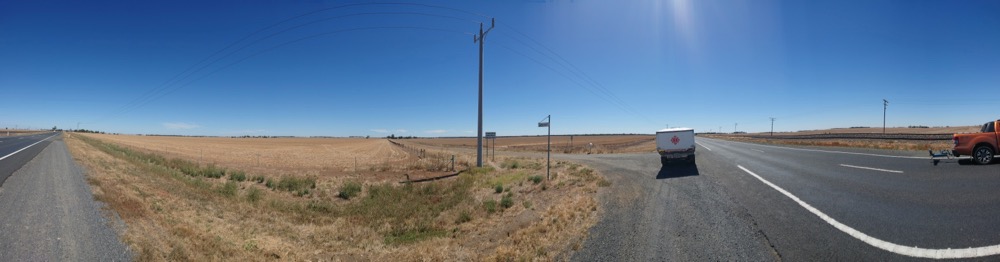 the journey was … mostly uneventful. i shot this 180 degree panorama somewhere around horsham. in this part of the world you would be excused to think the world was flat. it really looks like it.